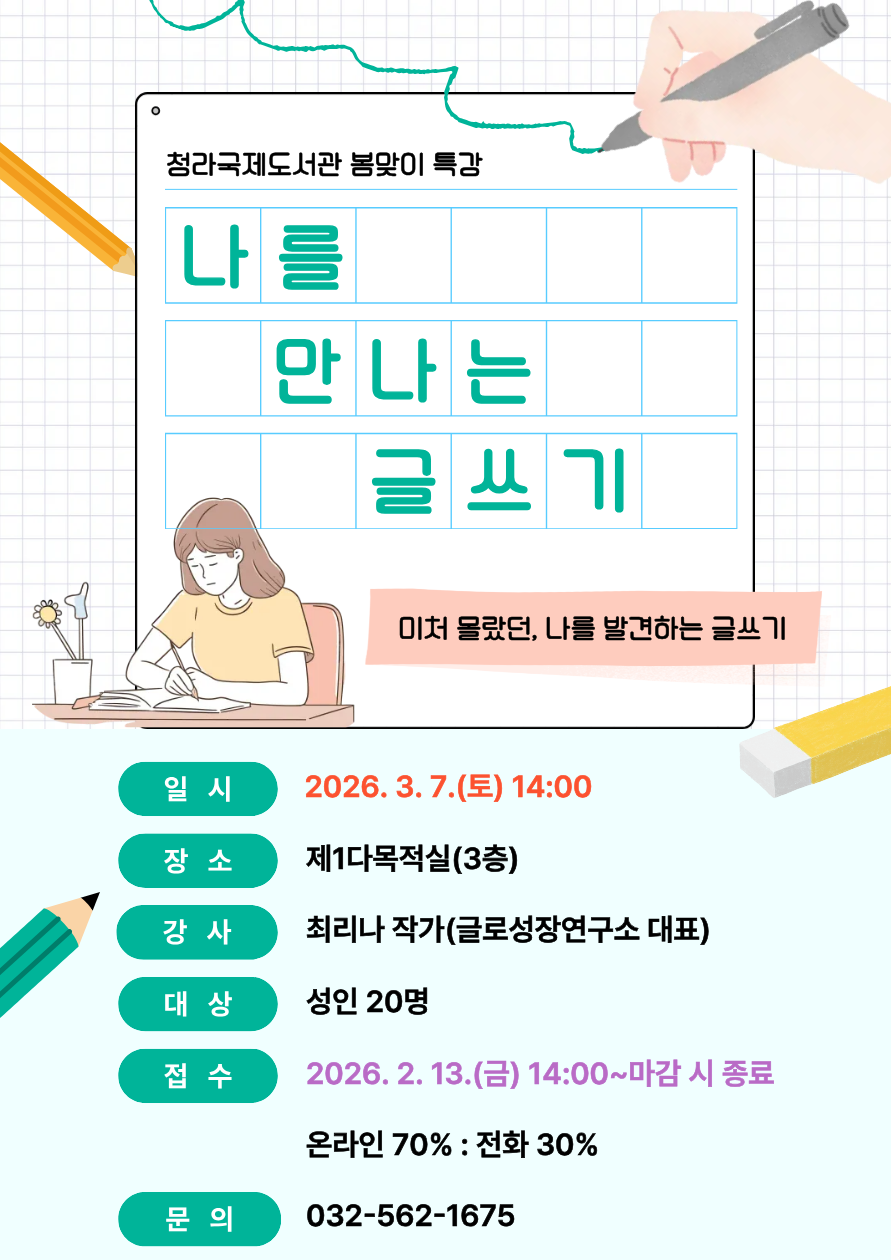 [청라국제] 인천도서관 2026년 상반기 정규강좌 및 독서회 수강생 모집(2.13.~마감 시)