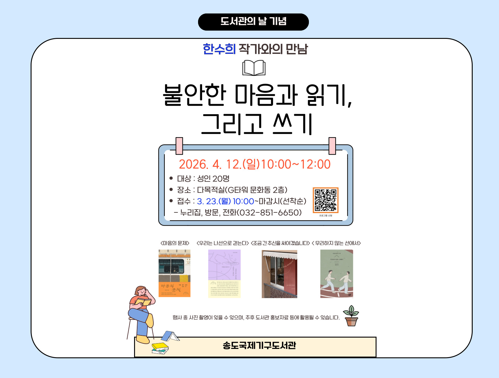 도서관의 날 기념 <한수희 작가와의 만남> 4. 12. (일) 10:00~12:00